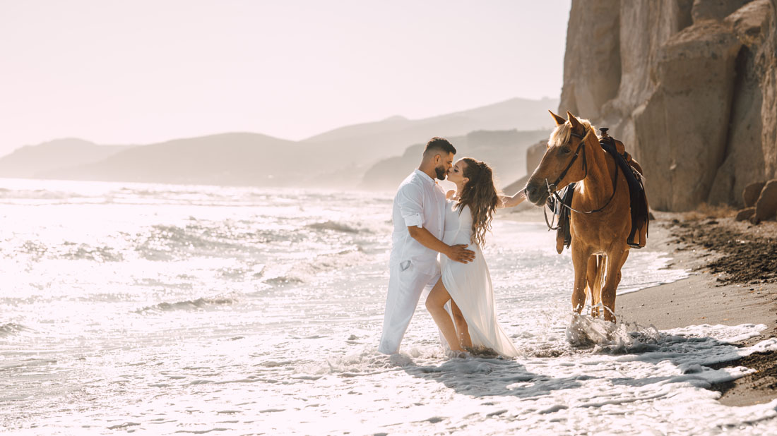 As a professional photographer, I’m dedicated to capturing the essence of your connection through natural, elegant, and emotionally rich images. From the charming narrow streets of Oia to the serene black-sand beaches and the panoramic viewpoints overlooking the Aegean Sea, every corner of the island offers a unique frame.